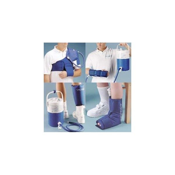 - Consists of durable cooler bottle and tube assembly; and cuffs for foot, ankle, calf/shin, knee, hamstring/quadriceps, shoulder, lower back, elbow and hand/wrist.