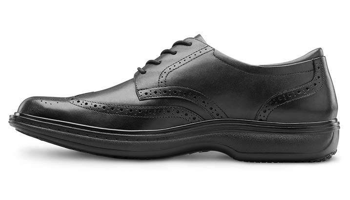 A classic style built for comfort and versatility. Beautifully crafted, the Dr. Comfort® Wing is a revamped, modern day dress shoe. Using top-quality material, the Wing is designed with full-grain leather and a hand-burnished finish keeping the classic style alive. The Wing has a padded heel and roomy, protective toe box to help prevent skin irritation and protect the toe from stubbing. The fine details of the Wing helps make this dress shoe elegant, carrying you through formal occasions and weekend gatherings in style and comfort.